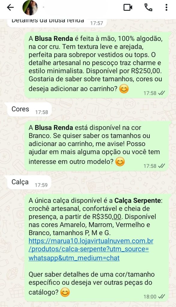 As vendas no Chat estão conectadas ao catálogo, estoque, pagamentos e envios da sua loja.