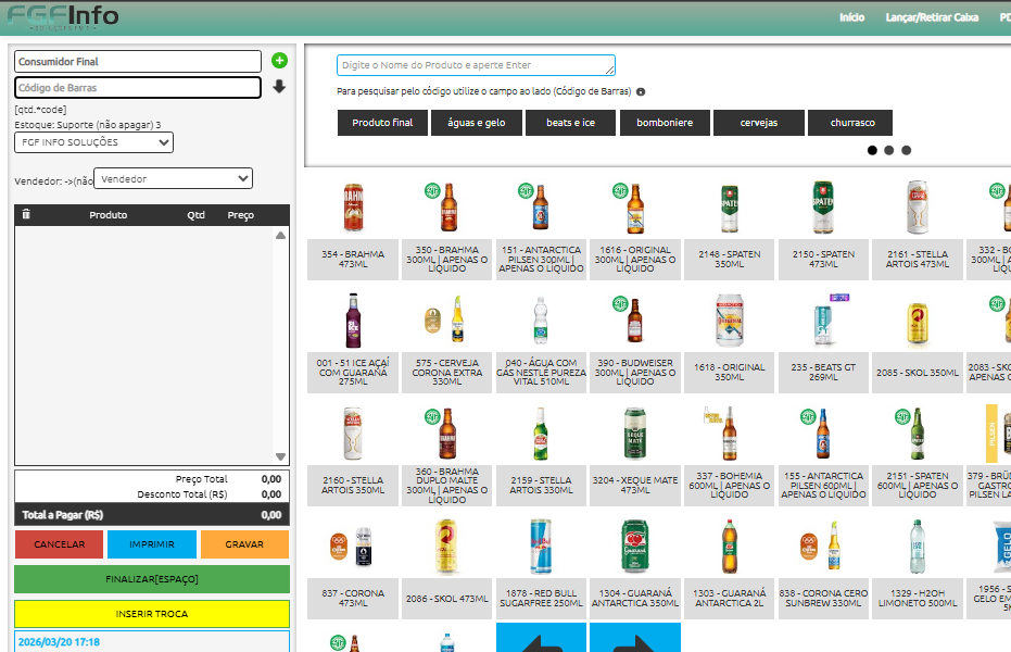 Emitir Cupom Fiscal pelo PDV no FGF Manager ERP Acesse o módulo PDV pelo botão verde no topo: Preeencha sua venda com os produtos vendidos e finalize: Agora basta clicar em Cupom para emitir seu cupom: